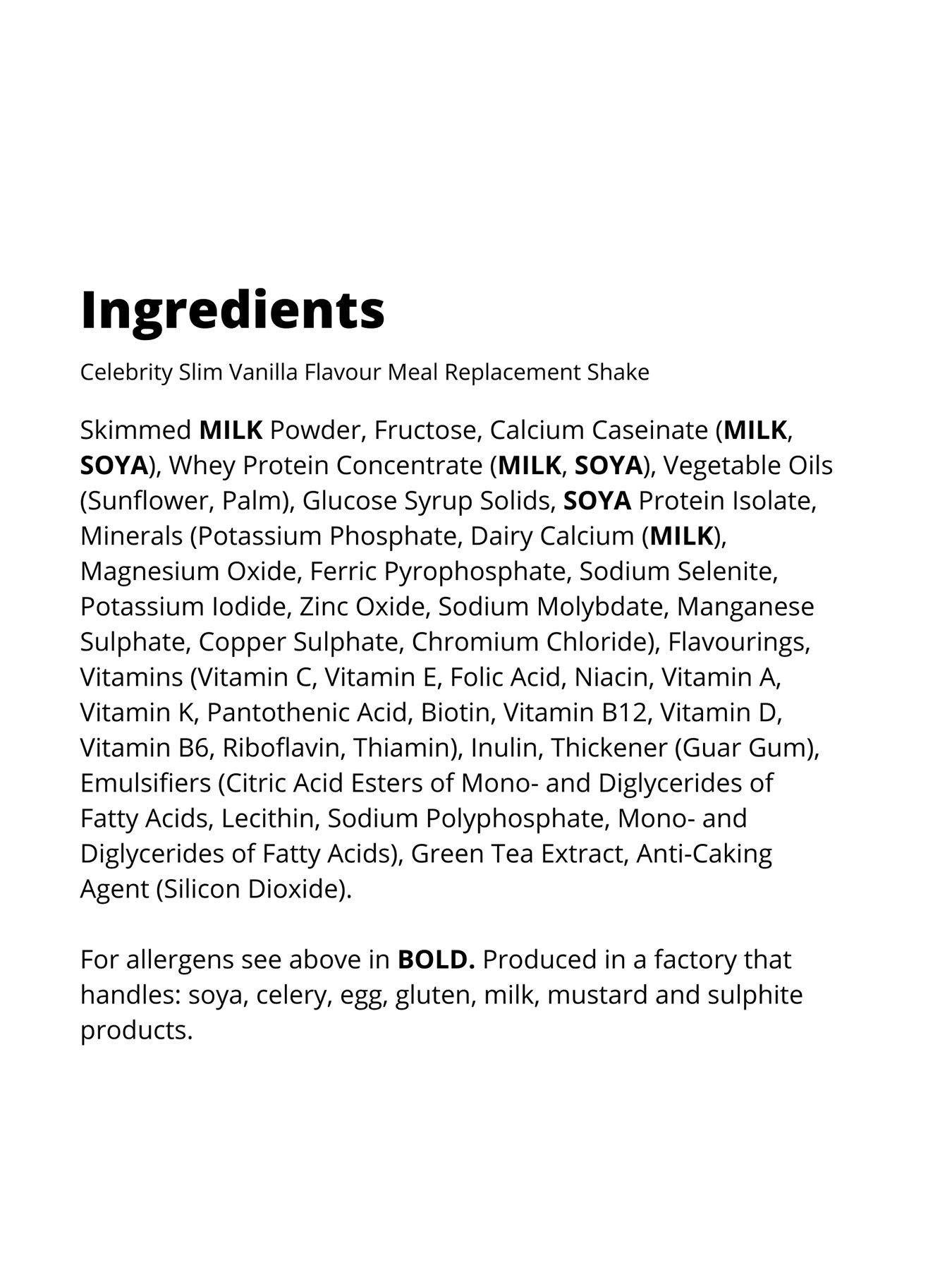 How Many Calories In Celebrity Slim Shake